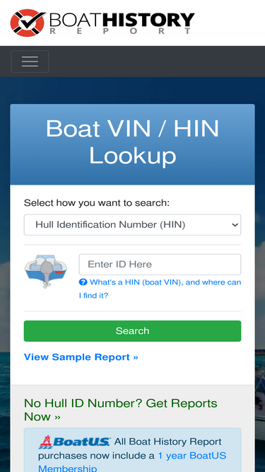 74%don't run the risk of buying a used boat with costly hidden problems. a hull identification number (hin) lookup checks for accidents, hurricane damage, salvage, theft, registration, and title records.