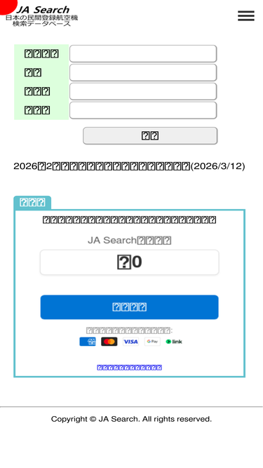 82%日本の民間登録航空機データベースです。ja番号や機種などから、航空機の検索ができます。