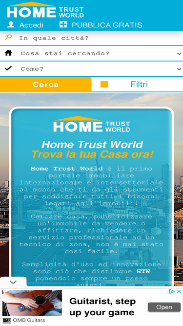 88%HomeTrustWorld è il portale immobiliare per trovare i tuoi immobili in tutto il modo, seleziona la tua casa attraverso i filtri e vedi subito l'edificio, contatta il venditore. Vuoi vendere la tua casa? Inserisci gratis il tuo annuncio e verrai contattato diettamente. Trova la tua casa ora.