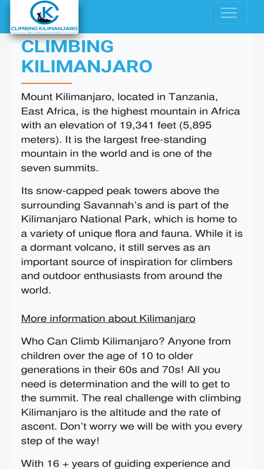 89%Climbing Kilimanjaro Tours: Best Kilimanjaro climb guide company. 98% Mount Kilimanjaro Summit success rate. Thousands of happy Clients.