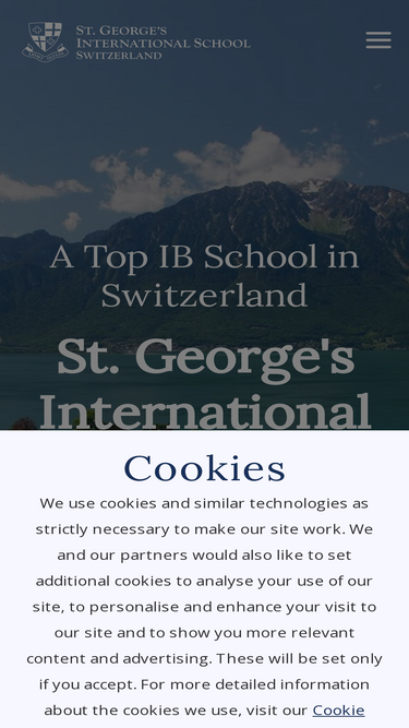 76%Cookie Policy 1. Introduction This policy sets out how the website available at https://www.stgeorges.ch/ (the “Website”) uses cookies and similar technologies. The Website is operated by St Georgre’s Internation School, (the “School”). The School is a member of the Inspired Education Group (the “Group”). 2. What is a cookie?