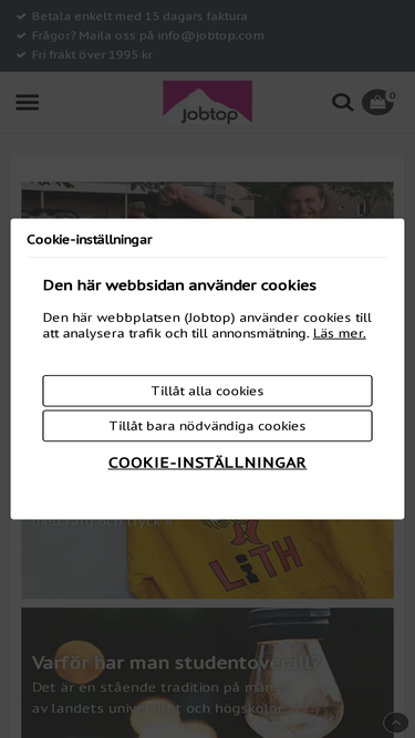 92%jobtop är ett företag som, utan mellanhänder, tillverkar studentoverall och arbetskläder under eget namn sedan början av 90-talet. snabba leveranser, kundprofilerad produktion och konkurrenskraftiga priser har alltid varit ledord för oss.