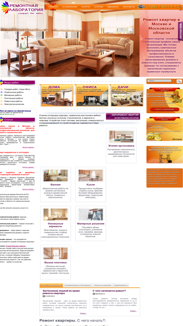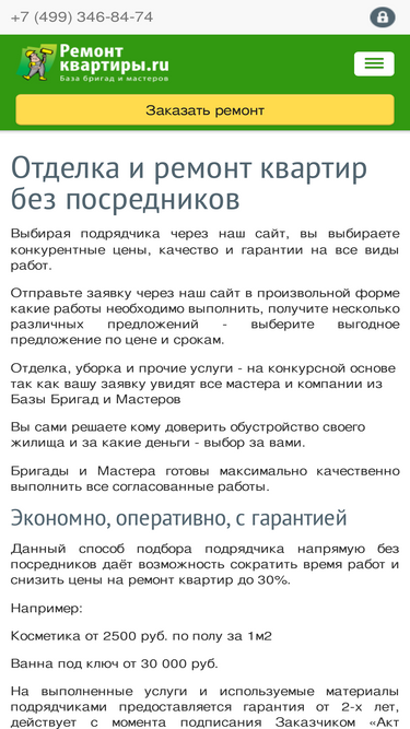 99%вы можете заказать ремонт квартир от косметического до капитального через наш сайт по всей базе бригад и мастеров. консультации по телефону +7(499)346-84-74 с 9.00-19.00 по московскому времени.