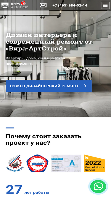 86%Дизайн интерьера квартиры, дома и офиса под ключ в Москве от 1400 ₽ за м2 ✔️ При заказе ремонта разработка проекта бесплатно |✔️ Заказать полный комплекс услуг от Вира-АртСтрой по проектированию интерьеров