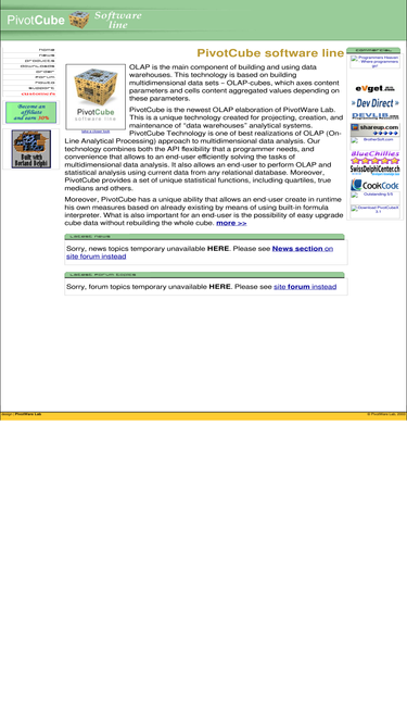 96%pivotcube is a high-performance visual component suite (delphi and c++ builder vcl and activex) for rapid development of internet, client-server and desktop business intelligence and data mining applications. it allows end users to perform olap and statistical analisys using current data from any relational database.