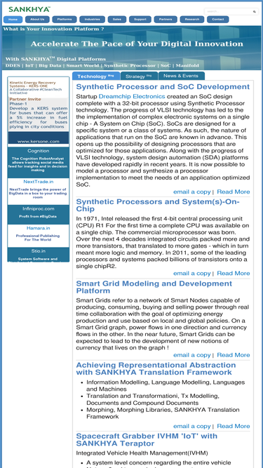 96%sankhya technologies offers model driven collaborative design, development, verification platforms and solutions for fast growing markets such as big data, internet of things, embedded systems, cloud computing, content management, document management, artificial intelligence (ai), generative grammars, natural language processing, machine translation, machine learning and automated verification.