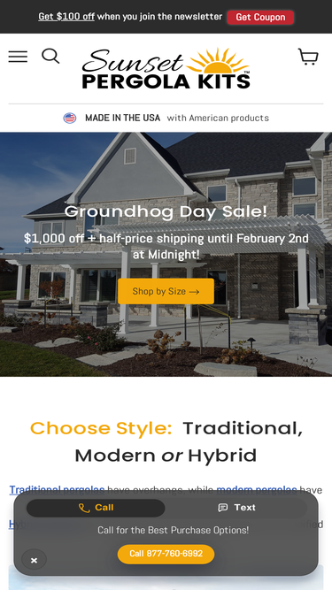 81%The pergola kits at Sunset Pergola Kits™ deliver beauty, quality and affordability. Our DIY pergola kits feature maintenance-free vinyl with heavy-duty internal aluminum frames. With our current sale, enjoy $1,000 off + half-price shipping.