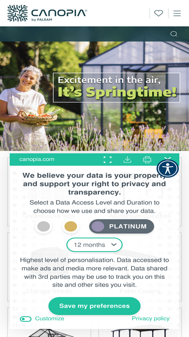 87%Canopia by Palram manufactures outdoor kits for domestic and commercial environments: Greenhouses, Canopies, Awnings, Patio Covers, Gazebos, Outdoor Sheds, Carports.