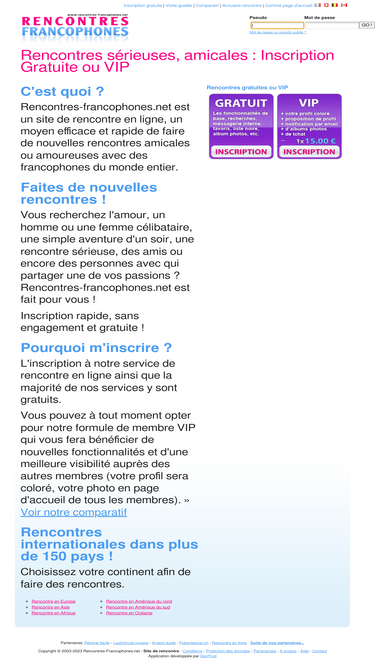 92%service de rencontre en ligne gratuit ou vip, rencontres sérieuses ou amicales grâce à notre portail francophone avec messagerie, chat, albums photos, etc.