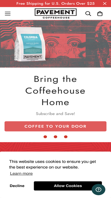 100%Our coffee subscription box includes two 12 oz. bags of fresh whole bean coffee delivered directly to your door as often as you'd like. Choose your coffee plan: Medium Roast Blends (Rathskeller Blend, Three of Cups, or a seasonal blend) Pavement Dark Only (Our dark roast) Single Origin Plan (light to medium roast) Let us know how to grind it! (if you'd like) Whole bean Coarse (french press, cold brew) Medium (drip coffee maker, pour over) Fine (moka pot, espresso) How frequently would you like to receive your coffee delivery?We recommend every 2-4 weeks—but you do you! US coffee subscriptions ship for free! There is no obligation and you can change your subscription at any time. Looking for gift subscriptions? Click here. Looking for 2 lb. bulk bag subscriptions? Click here.