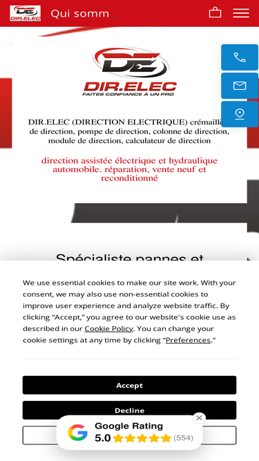 83%L'entreprise DIR.ELEC est spécialisée dans la réparation et la vente de directions assistées électriques et hydrauliques, compteurs, airbag, abs et autres pièces électroniques automobile. *pompes de direction assistées électriques et hydrauliques *crémaillères de direction assistées électriques et hydrauliques *colonnes de direction assistées électriques *crémaillères de direction mécaniques