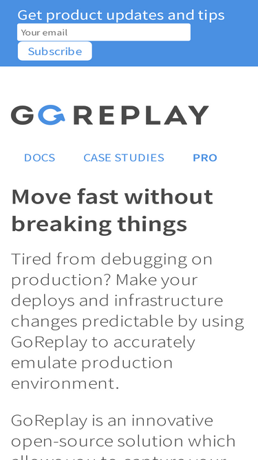98%goreplay is the simplest and safest way to test your app using real traffic before you put it into production.