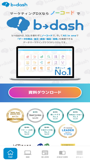 93%b→dashはマーケティングに必要なデータの取得・統合・活用をAll in Oneで実現するマーケティングプラットフォームです。
