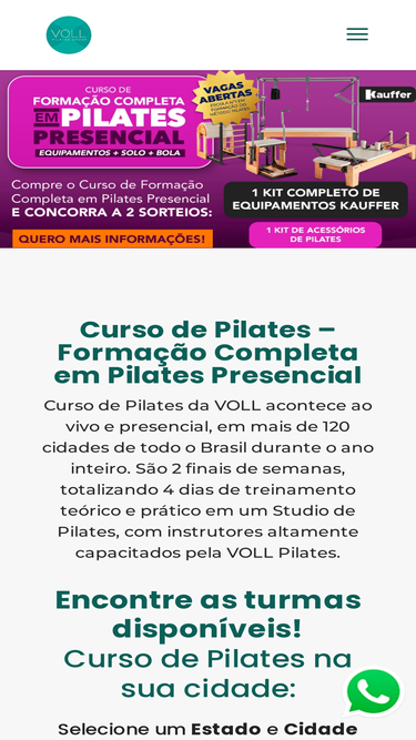 75%Curso de Pilates Presencial em sua cidade | VOLL Pilates. Mais de 105 mil profissionais formados. 140+ cidades. Inscreva-se!