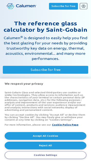 85%calumen is an online specification tool that allows you to compute light, energy, thermal, acoustic, environmental, aesthetics, safety and security performances of glazings