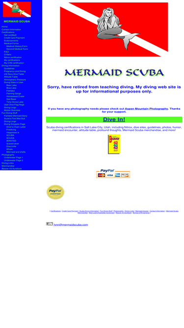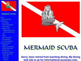 Mermaid Scuba is about scuba diving certifications in Salt Lake City and Ogden, Utah, including Nitrox, has information, guidelines, humor, photographs, mermaid story, dive sites, carries Beaver-43 sunblock, and more.