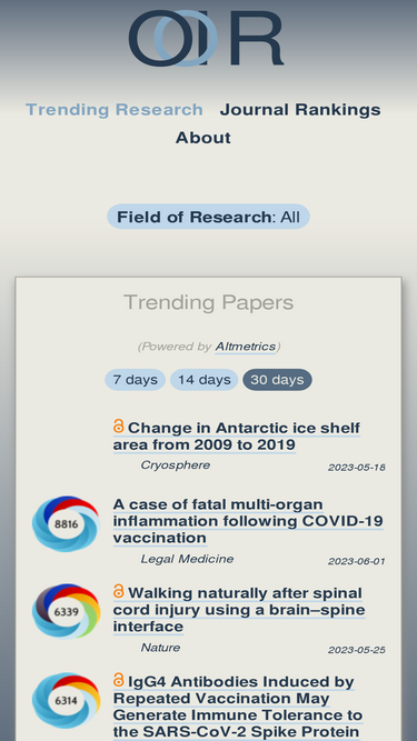 92%research trends across the sciences, and journal rankings based on impact factor, h-index, tqcc, and other metrics.