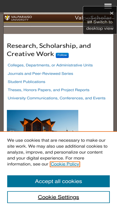 97%valposcholar serves as the central repository for the research, scholarship, and creative work of valparaiso university faculty, staff, and students.