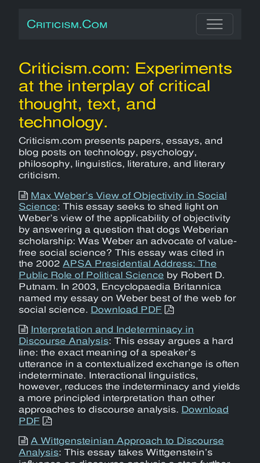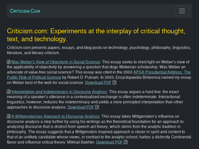 76%criticism.com includes essays, white papers, and book reviews on technology, media theory, media criticism, discourse analysis, philosophy, and linguistics.