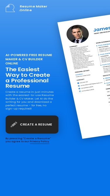 Create a professional resume in minutes with our 100% free resume builder. Access 100+ resume samples and AI-powered writing assistance to craft a standout resume. Save, export, and apply faster—connect with millions of jobs today!
