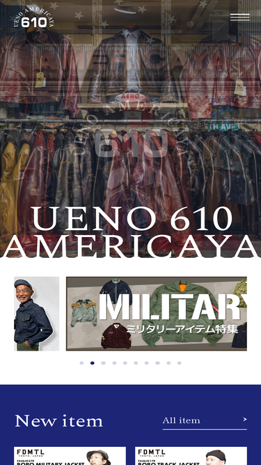 1952年創業の上野アメリカ屋610では、メンズアメリカンカジュアルを中心に、豊富なアイテムを展開。デニム、レザー、ワーク、ミリタリー、トラッド、アウトドアなど、幅広いアイテムの中から、こだわりの一着がきっと見つかります。