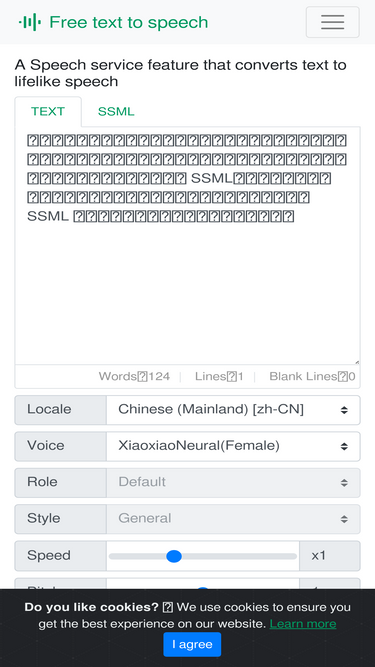 83%we developed an online text-to-speech synthesis tool, which converts text into natural and smooth human voice, provides 100+ speakers for you to choose, supports multi-language, multi-dialect and chinese-english mixing, and can configure audio flexibly parameter. it is widely used in news reading, travel navigation, intelligent hardware and notification broadcasting. and can convert the text content into mp3 files to download and save.