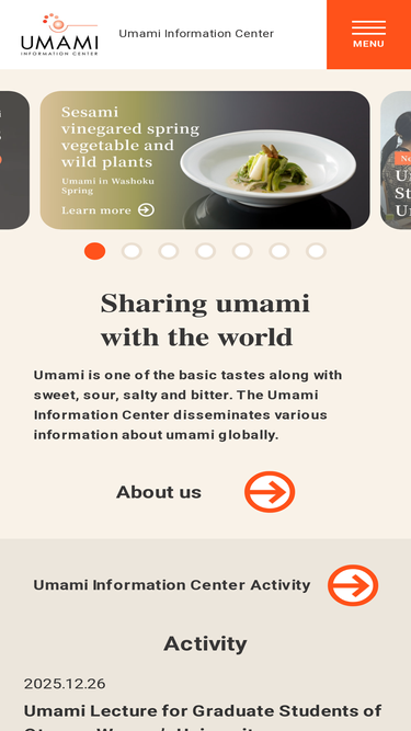 63%to disseminate umami, the fifth basic taste, the umami information center (uic) is dedicated to spread out accurate, useful and updated umami information over the globe.