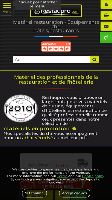 100%Restaupro, fournisseur restaurants et cuisines professionnelles, vente en ligne de matériels restauration, équipements CHR pour professionnels restauration et hôtellerie.