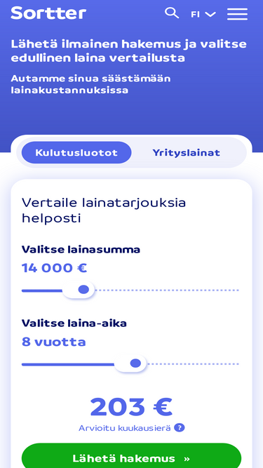 75%Autolainaa jopa 70 000 € ilman käsirahaa tai vakuuksia. Osta auto käytettynä yksityiseltä tai uusi autoliikkeestä. Kilpailuta autorahoitus nyt – saat rahat tilille jopa samana päivänä.
