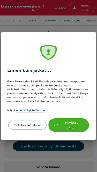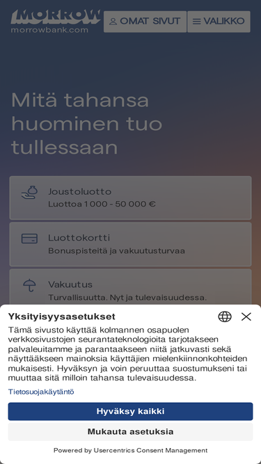 Täältä löydät lisätietoja Santanderconsumer.fi -sivustolla käytetyistä evästeistä.