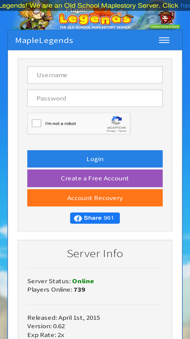 75%Old School MapleStory is back! Play classic MapleStory at MapleLegends for FREE! Available since April 2015. JOIN NOW and go back in time...