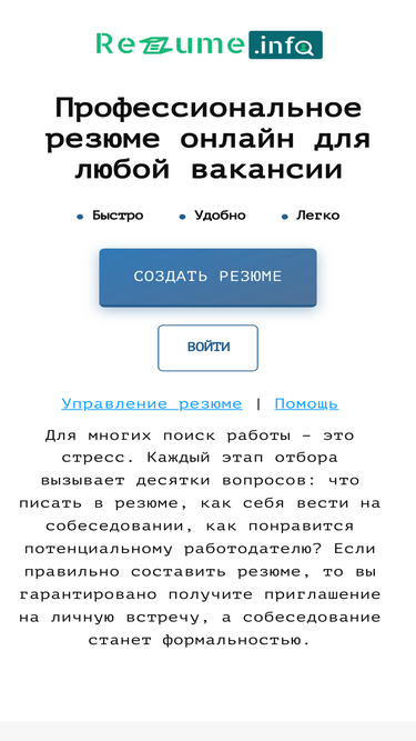 89%конструктор по созданию резюме предлагает составить качественное резюме для поиска работы. большой перечень различных шаблонов. различные профессии.