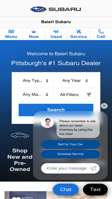 89%baierl subaru is your local pittsburgh subaru dealership for new subaru vehicles, used cars, service, parts and financing. shop online on our website 24/7.