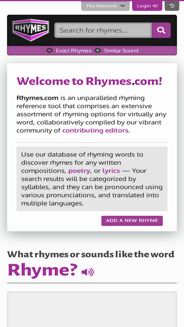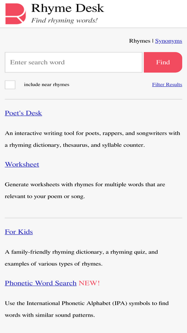 80%the most extensive dictionary of perfect and near rhymes. mobile friendly.