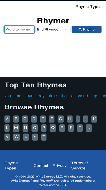 100%Enhance your writing with our online rhyming dictionary. Discover rhyming words for lyrics, poetry, and more.