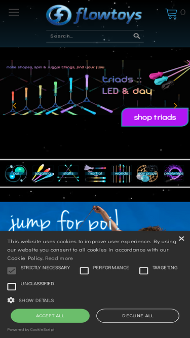 78%Creators of the world’s favorite glow poi, batons, LED juggling clubs, martial arts props, innovators of levi-wand and the first rechargeable LED glowstick, flowtoys is a pioneer in glow toys loved for play, practice & performance. All our props are rechargeable, come w/ a lifetime warranty and amazing customer care.