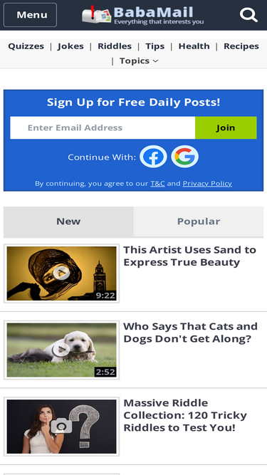 87%We're here to inspire, make you laugh and enrich your knowledge with thousands of family friendly articles, videos and photos on health and lifestyle, art and design, nature, history, sports, religion, science and technology. We have fun games, quizzes, riddles and viral posts as well as DIY guides, helpful tutorials and tasty recipes
