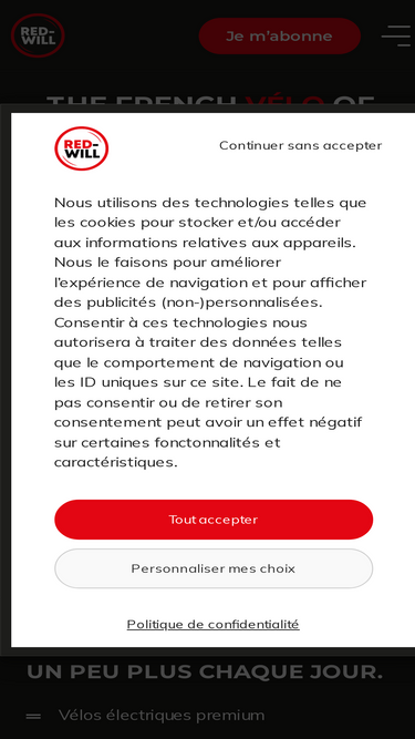 100%Choisissez votre abonnement, vos accessoires et commandez votre vélo électrique RED-WILL en 5 minutes chrono.
