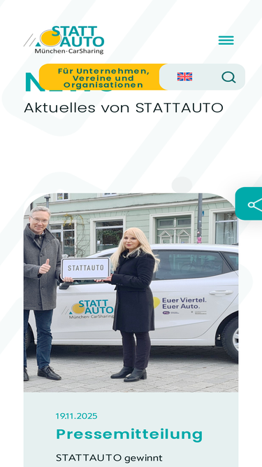 74%Die Preise für STATTAUTO München sind abhängig von unseren Tarifen. Bei Standardtarif, YoungMobility oder GoFamily findet jeder etwas.