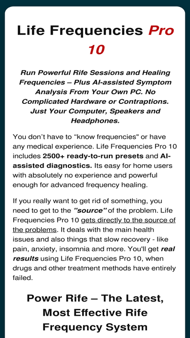 80%life frequencies pro x8 - the best alternative health and rife machine system for your computer. eliminate health problems, pain, stress, insomnia and more better than any other rife machine and does more. download...
