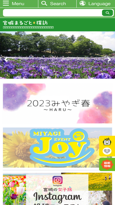 100%宮城県の観光・旅行情報を探すなら! 仙台・松島・蔵王・鳴子・石巻・気仙沼などの観光名所や穴場スポット、人気イベント・体験・レジャー、モデルルート・プラン、桜・花火・紅葉などの季節情報や牛たんや海鮮料理などのグルメ情報、宿泊予約、交通アクセスなど旅行計画に役立つおすすめ情報が満載です!!