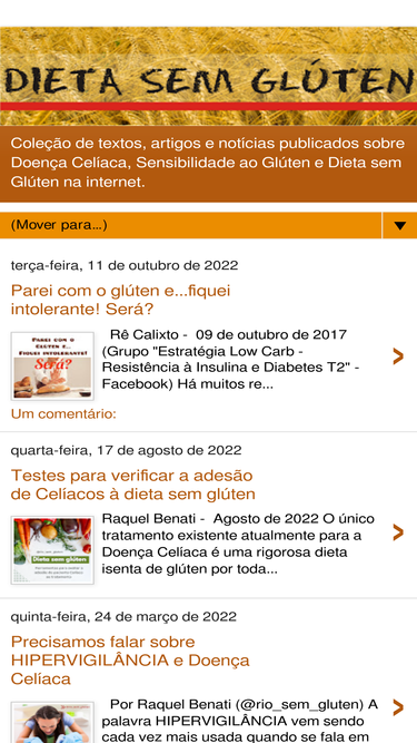 coleção de textos, artigos e notícias publicados sobre doença celíaca, sensibilidade ao glúten e dieta sem glúten na internet.