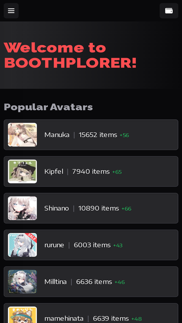 68%BOOTHで販売されているアバターを、対応アイテムの数を元に検索できるサービスです。