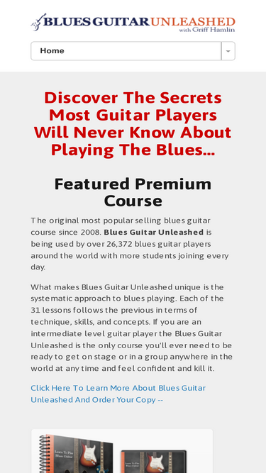 73%Blues Guitar UnleashedHere's How Real People, Just Like You, Learn And Master Blues Guitar...Join the over 72,495 other guitar players around the world learning and playing the blues with video lessons from Blues Guitar Unleashed.Get Started TodayYou might think you have to be born with it, but the truth is, anyone can learn to play the blues on guitar...With dozens…