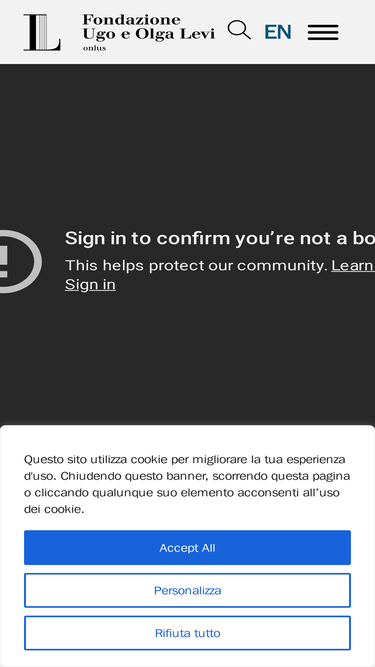 100%La presente Privacy & Cookie Policy è relativa al sito www.fondazionelevi.it (“Sito”) gestito e operato dalla società Fondazione Ugo e Olga Levi Onlus Il sito non raccoglie dati personali dell'utente ed utilizza cookie funzionali e di tracciamento per fini statistici. Il tracciamento viene eseguito utilizzando i cookie di Google Analytics…