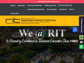 100%Rajarambapu Institute of Technology (RIT), Rajaramnagar, RIT is one of the iconic institutions of higher technical education in Western Maharashtra. RIT, Rajaranagar is an Autonomous Institute affiliated to Shivaji University, Kolhapur.