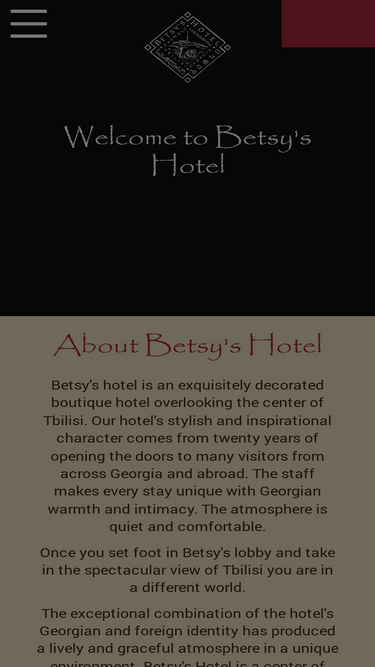 Betsy's hotel is an exquisitely decorated boutique hotel overlooking the center of Tbilisi. Our hotel's stylish and inspirational character comes from twenty years of opening the doors to many