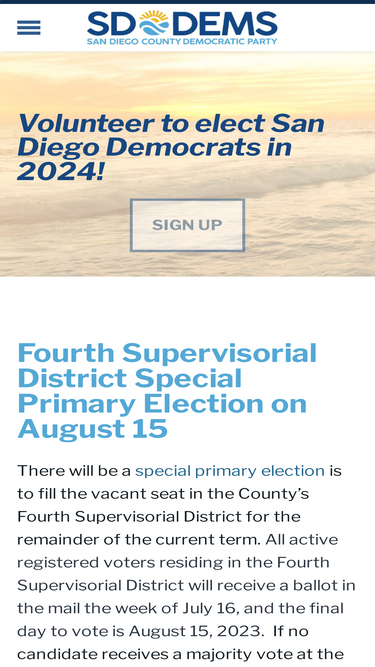 78%Learn about upcoming elections and candidates in San Diego County, how to volunteer to elect Democrats, how to get involved with local Democratic organizations, and more.