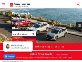87%Visit us and test drive a new or used Toyota in Bloomington, IL at Sam Leman Toyota Bloomington. Our Toyota dealership always has a wide selection and low prices. We've served hundreds of customers from Peoria, Normal, Morton and Washington.