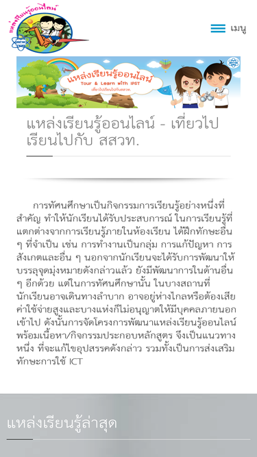 86%การทัศนศึกษาเป็นกิจกรรมการเรียนรู้อย่างหนึ่งที่สำคัญ ทำให้นักเรียนได้รับประสบการณ์ ในการเรียนรู้ที่แตกต่างจากการเรียนรู้ภายในห้องเรียน ได้ฝึกทักษะอื่น ๆ ที่จำเป็น เช่น การทำงานเป็นกลุ่ม การแก้ปัญหา การสังเกตและอื่น ๆ นอกจากนักเรียนจะได้รับการพัฒนาให้บรรลุจุดมุ่งหมายดังกล่าวแล้ว ยังมีพัฒนาการในด้านอื่น ๆ อีกด้วย แต่ในการทัศนศึกษานั้น ในบางสถานที่นักเรียนอาจเดินทางลำบาก อาจอยู่ห่างไกลหรือต้องเสียค่าใช้จ่ายสูงและบางแห่งก็ไม่อนุญาตให้มีบุคคลภายนอกเข้าไป ดังนั้นการจัดโครงการพัฒนาแหล่งเรียนรู้ออนไลน์พร้อมเนื้อหา/กิจกรรมประกอบหลักสูตร จึงเป็นแนวทางหนึ่ง ที่จะแก้ไขอุปสรรคดังกล่าว รวมทั้งเป็นการส่งเสริมทักษะการใช้ ict